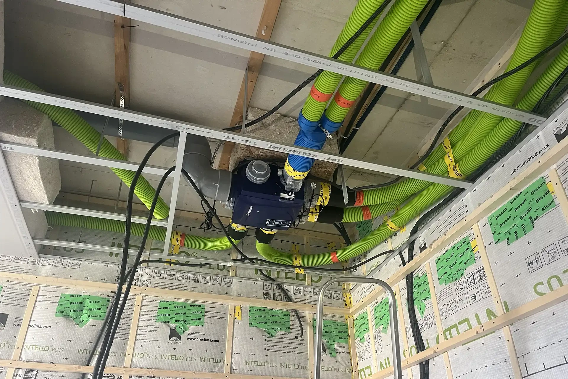 L'ampleur des travaux dépend principalement de la configuration de votre logement et de l'existence d'un système de ventilation préalable. Lors d'un remplacement, nous utilisons au maximum l'infrastructure existante pour limiter l'impact sur votre intérieur. Pour une première mise en œuvre, nous privilégions des passages discrets qui minimisent l'impact visuel. Nos intervenants travaillent avec méthode et utilisent des protections adéquates pour préserver votre décoration. La plupart des chantiers se terminent en une journée, tandis que certaines configurations plus complexes peuvent nécessiter un temps supplémentaire, systématiquement évalué lors de l'étude initiale.