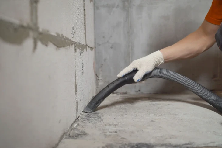Nous éliminons microparticules et poussières résiduelles grâce à nos systèmes d'aspiration, vous offrant un environnement propre avant la nouvelle isolation.